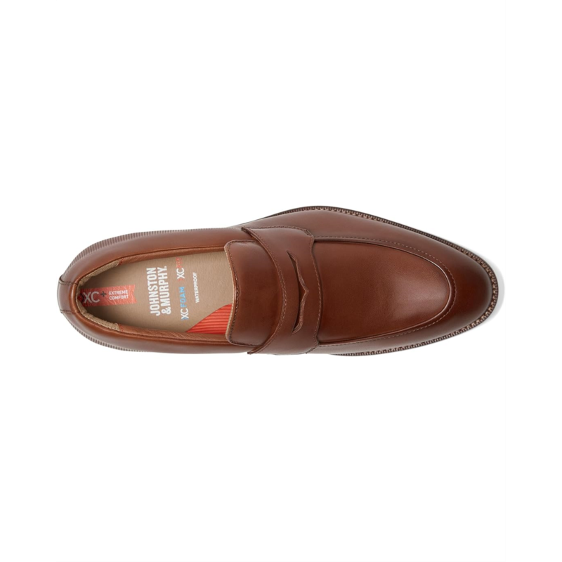 - The Johnston & Murphy Xc Copley Penny features a full-grain waterproof leather upper and leather lining for premium durability and breathability. The exclusive XC+ comfort system combines waterproof construction with targeted support, while XC Fit touch points deliver added cushioning in the tongue, heel, and arch. A molded, removable XC Foam footbed offers ultra-light, high-rebound cushioning for long-lasting comfort.