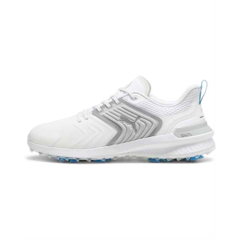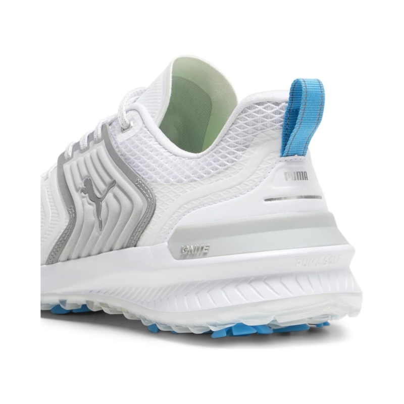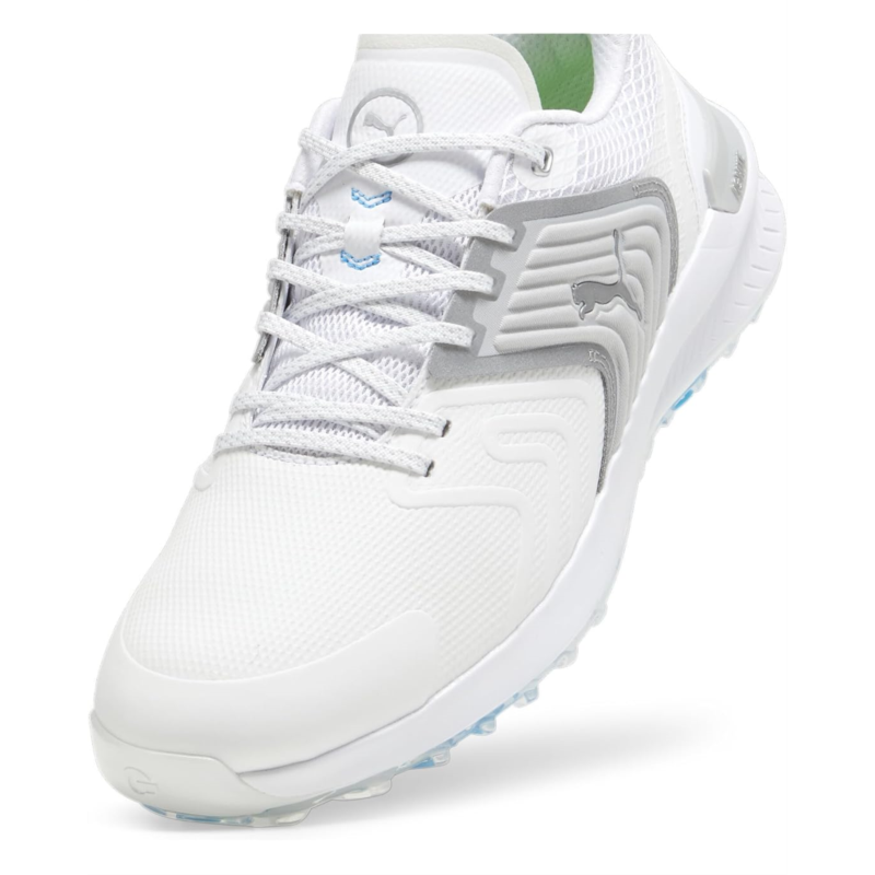 Elevate your golfing experience by wearing the PUMA Golf Ignite Innovate Sneakers. Crafted with a lightweight and waterproof EXOSHELL synthetic upper, these sneakers offer exceptional style and comfort. The textile lining ensures breathability, while the Textile + PU insole enhances cushioning for long-lasting comfort on the greens. Equipped with an EVA midsole for superior grip and stability, these sneakers provide the perfect balance between support and flexibility.