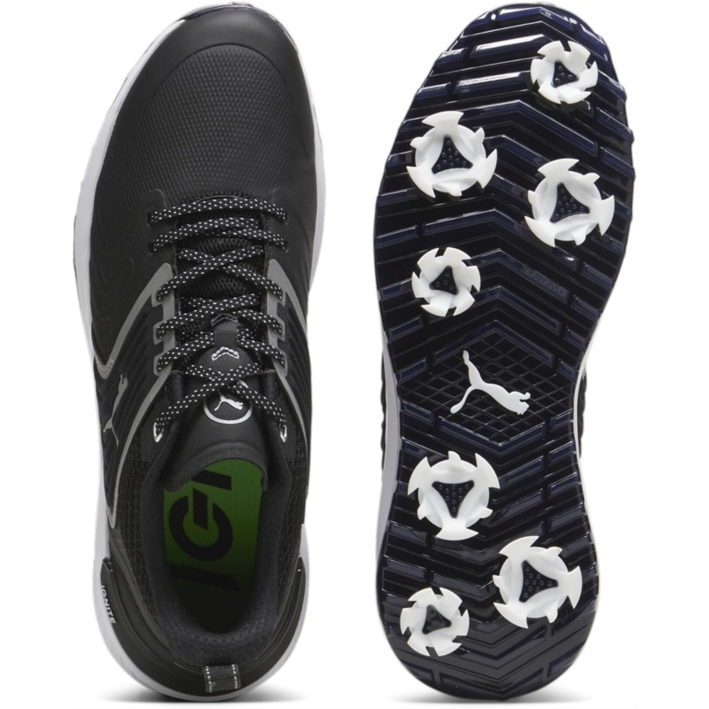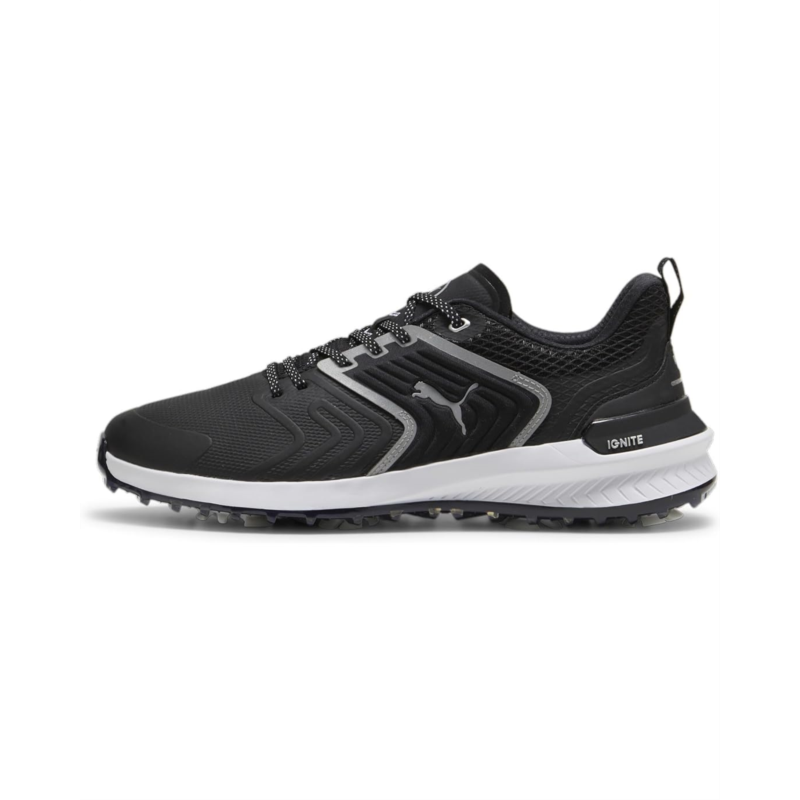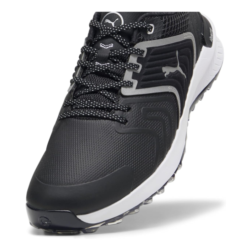 Elevate your golfing experience by wearing the PUMA Golf Ignite Innovate Sneakers. Crafted with a lightweight and waterproof EXOSHELL synthetic upper, these sneakers offer exceptional style and comfort. The textile lining ensures breathability, while the Textile + PU insole enhances cushioning for long-lasting comfort on the greens. Equipped with an EVA midsole for superior grip and stability, these sneakers provide the perfect balance between support and flexibility.