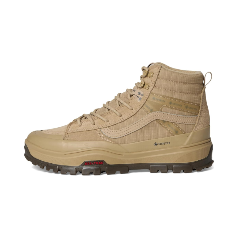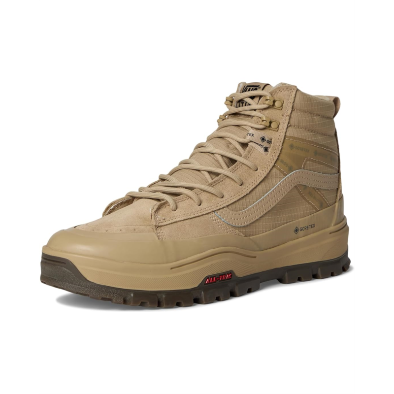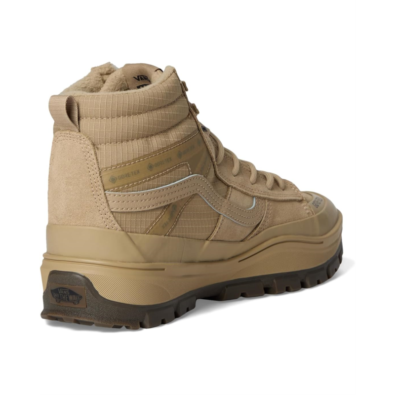 Gear up for any weather wearing the Vans U MTE Sk8-Hi Gore-Tex Insulated, where legendary street style meets all-terrain functionality. Built with a rugged mix of leather, textile, and synthetic uppers, this high-top icon is all-terrain ready and engineered for maximum protection from the elements. The GORE-TEX breathable waterproofing keeps your feet dry without compromising comfort, while the insulated design locks in warmth when temperatures drop. A leather lining and durable rubber outsole ensure long-lasting wear and traction across unpredictable surfaces. Finished with a classic lace-up closure, this weather-ready sneaker delivers the perfect balance of skate-inspired edge and outdoor performance.