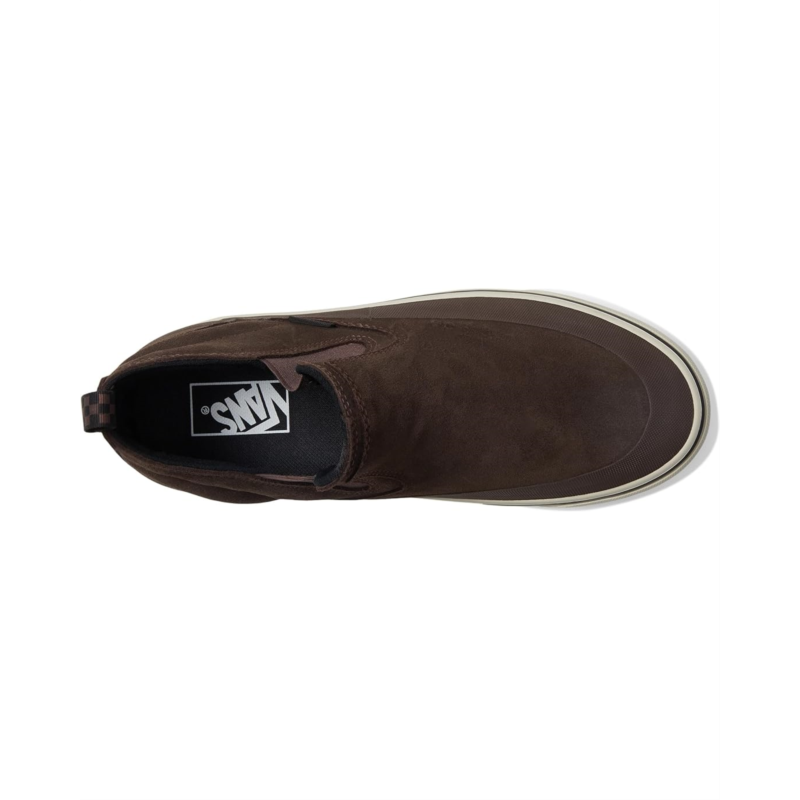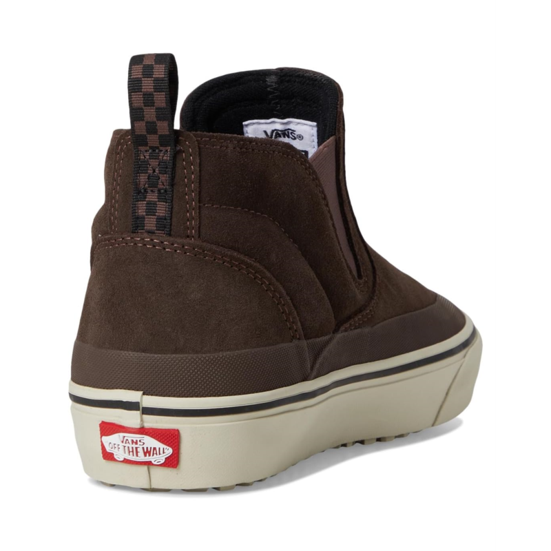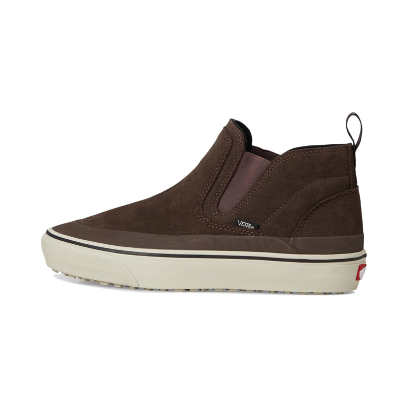 The Vans Mte Mid-Slip Insulated is a slip-on built for comfort, warmth, and all-weather protection with a rugged Chelsea boot-inspired silhouette. The upper combines leather, suede, and textile materials, treated with a durable water-repellent (DWR) coating to shed light moisture. Inside, a 100-gram insulation package helps retain warmth, while the UltraCush drop-in footbed provides cushioned support for all-day wear.