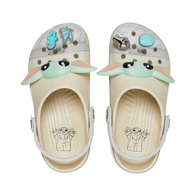 Styled with Star Wars-themed graphics and charms, the Crocs Star Wars Grogu Classic Clogs add a fun twist to your outfits and looks. Featuring ventilation ports that quickly shed water and debris, these clogs offer enhanced breathability. Easy to wash and quick to dry, these clog shoes are crafted with EVA upper and insole that make them comfortable for all-day wear. The flexible and lightweight Iconic Crocs Comfort provides 360-degree comfort. These waterproof clogs are customizable with Jibbitz charms.