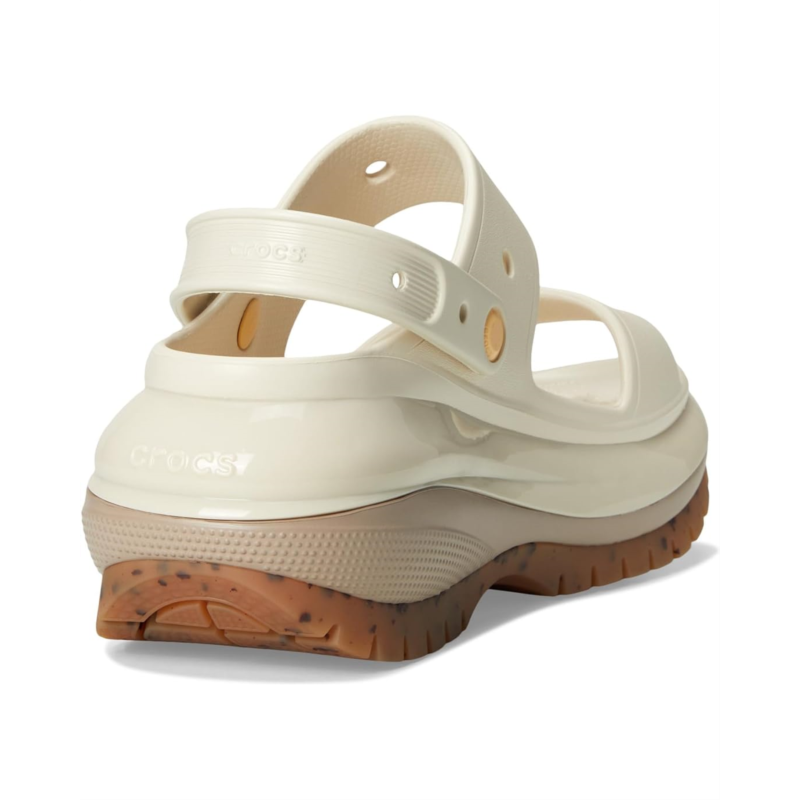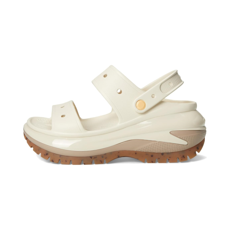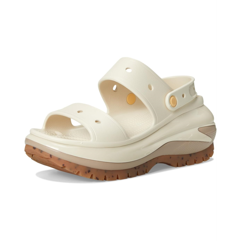 The look and feel of the Classic Mega Crush Clog is now available in sandal form. Introducing the Classic Mega Crush Sandal, featuring an enhanced rubber tread, updated detailing around the outsole and a platform ready to take any outfit to the next level. A two-strap upper and secure backstrap help ensure a secure fit, while boasting holes for personalization with Jibbitz. Are you ready for your new crush?