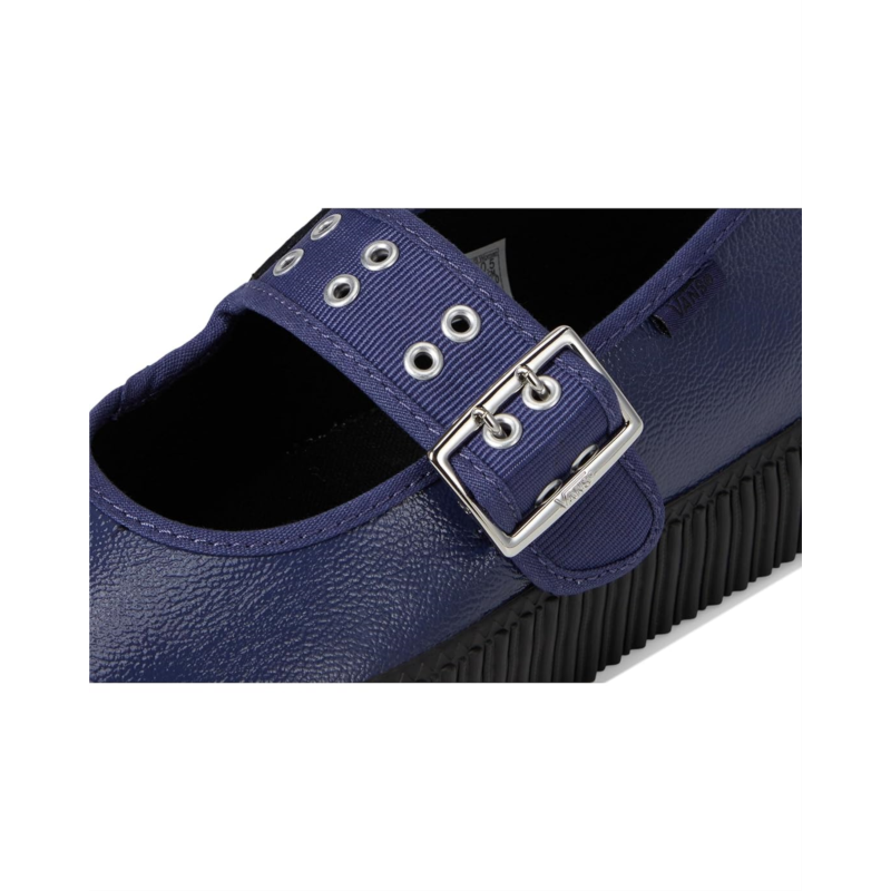 The Vans Mary Jane Creeper features a wide strap with buckle closure, paired with double row eyelets for a secure and edgy look. The canvas uppers offer durability and breathability, while the rubber toe caps and signature waffle rubber outsoles ensure grip and comfort. What sets it apart is the thick, textured creeperkorea sidewall, which adds height and attitude to the otherwise feminine silhouette.