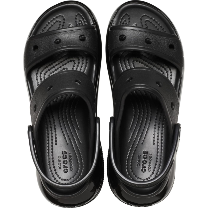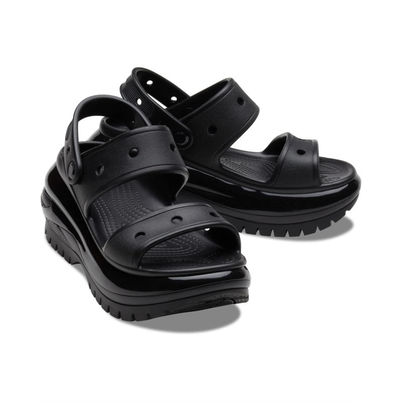 The look and feel of the Classic Mega Crush Clog is now available in sandal form. Introducing the Classic Mega Crush Sandal, featuring an enhanced rubber tread, updated detailing around the outsole and a platform ready to take any outfit to the next level. A two-strap upper and secure backstrap help ensure a secure fit, while boasting holes for personalization with Jibbitz. Are you ready for your new crush?