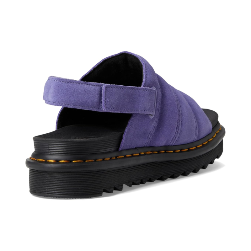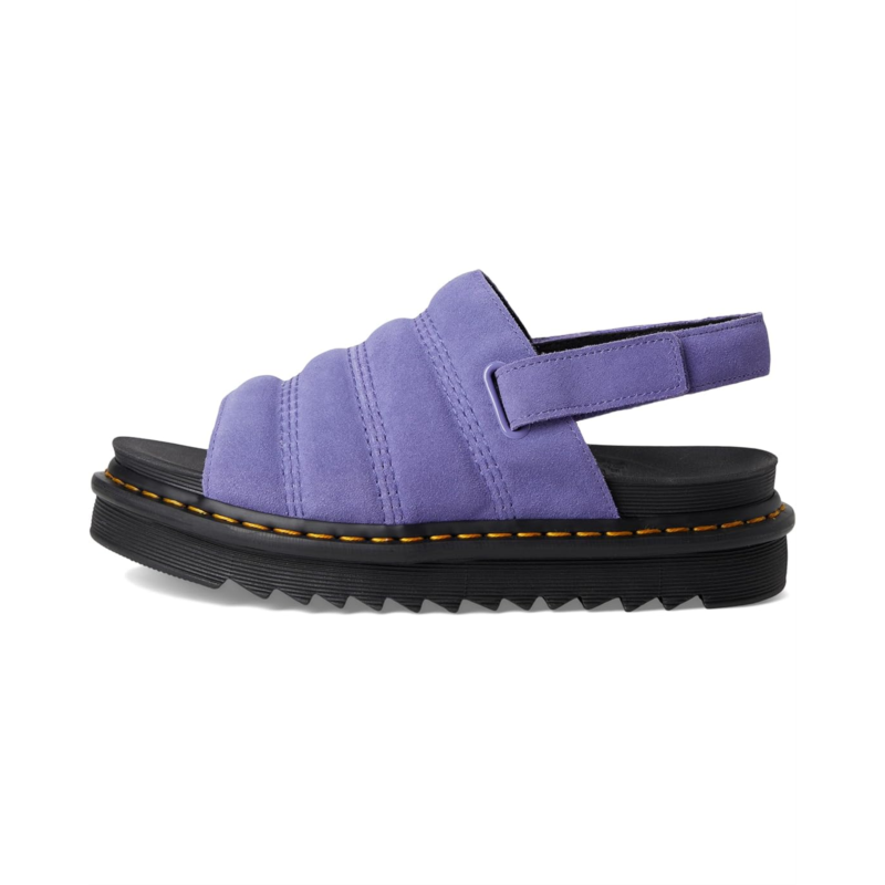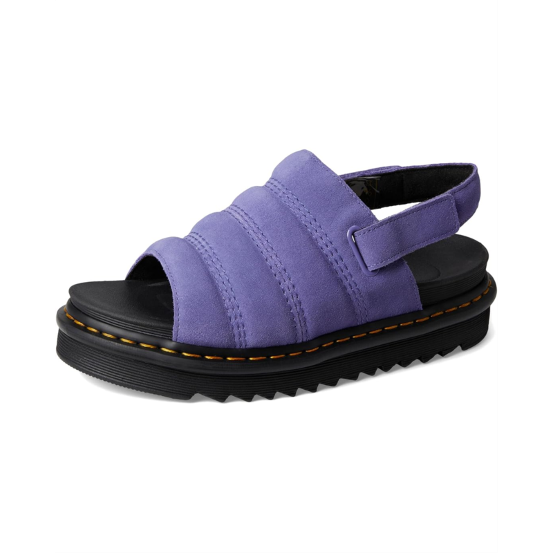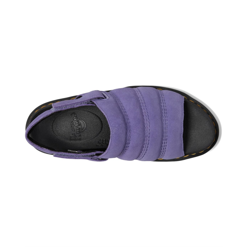 The Dr. Martens Kole sandal is specially designed to combine a pillow-soft padded upper with a super-lightweight ethylene vinyl acetate outsole, so you can take your home comforts for a spin on the street. The molded SoftWair EVA footbed and EVA, PVC midsole will feel like walking on air, while the adjustable Ripstop hook-and-loop strap helps you find the perfect fit. Finished with signature DM''s yellow welt stitching. The open round-toe sandal features a platform heel and is finished with signature Dr. Martens'' Goodyear yellow welt stitching.