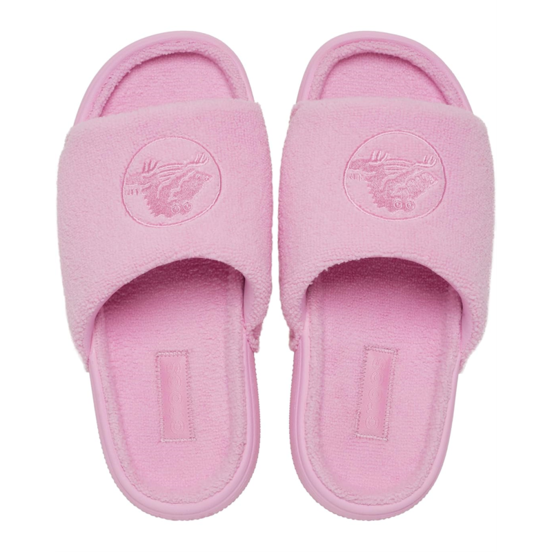 Take a walk in the clouds wearing the Crocs Classic Towel Slide. Crafted from textile upper, textile lining and textile insole, this pair of cozy slides features open round toe, slip-on closure and brand detailing on the vamp and footbed. These sporty look flat sandals make a comfy statement for both men and women.
