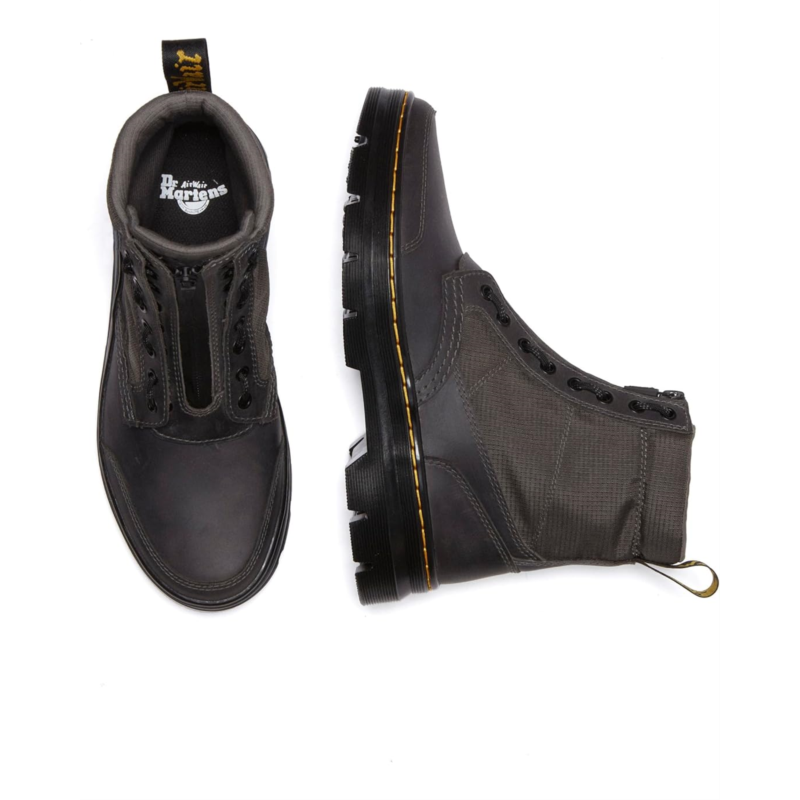 The Dr. Martens Combs Jungle Zip Casual Boots, are built with a mix of weatherproofed leather and synthetic materials to create a practical and easy-tokorea all-season boot. Outfitted with a removable jungle zip and gator-inspired quarters for different ways to wear it. The ankle-high boots are built with polyester ripstop and weatherproofed Republic WP leather, fabric lining, and EVA insole. The cemented Tract sole is marked with Doc''s signature yellow stitching.