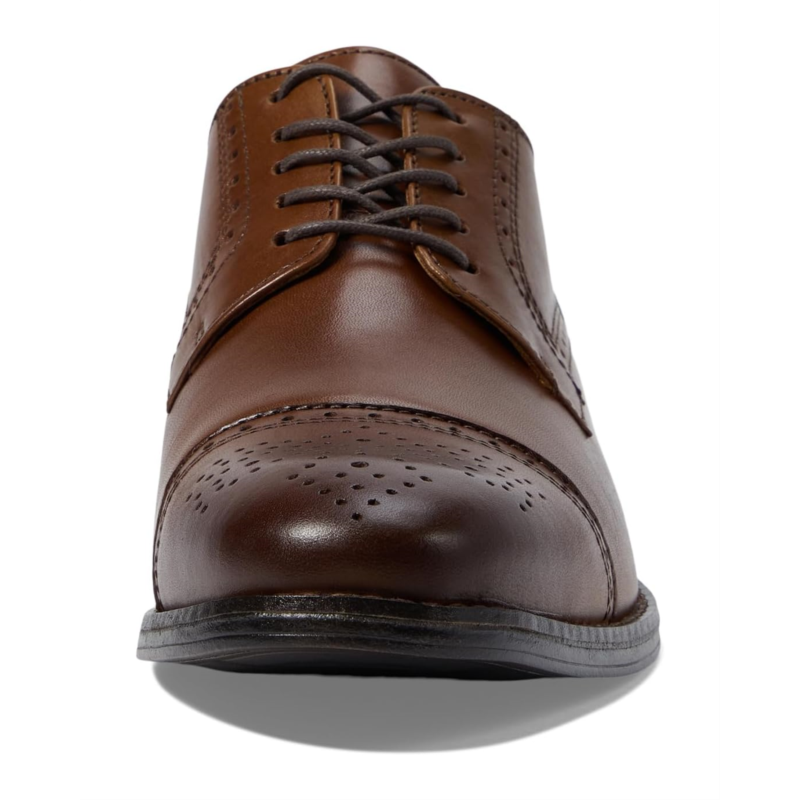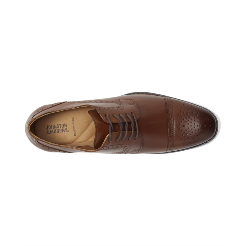 Good things happen to those who hustle in the Johnston & Murphy Lewis Cap Toe oxford. The lace-up shoe has rich leather uppers and features a cap toe and brogue details throughout.
