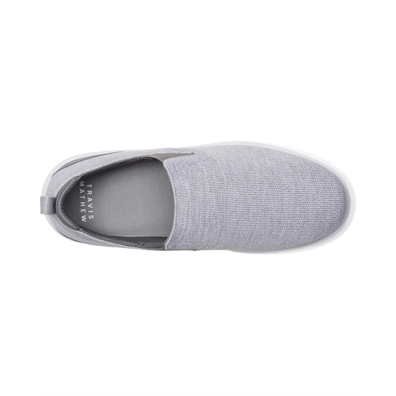 Slip into casual comfort with ease in the TravisMathew The Daily Knit Slip shoes. These shoes come in a round toe silhouette with a nylon elastane upper in a slip-on style and elastic goring on the sides. The pull loop in back makes it easy for on and off access as well.
