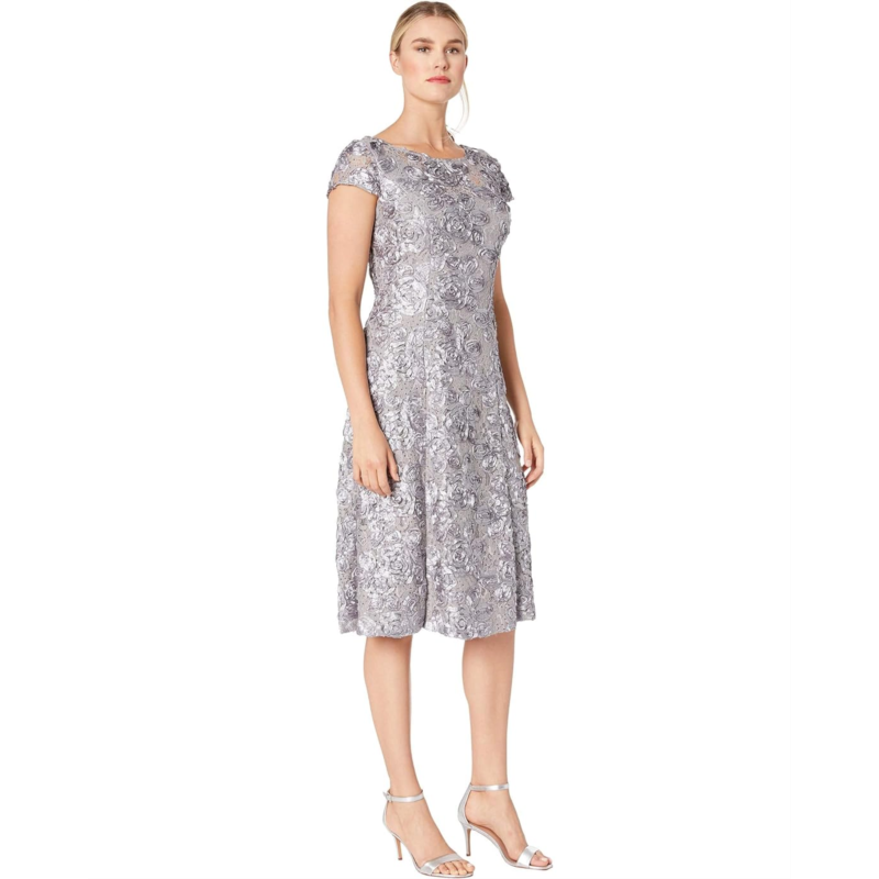 - This gorgeous Alex Evenings Tea Length A-Line Rosette Dress made especially for you.