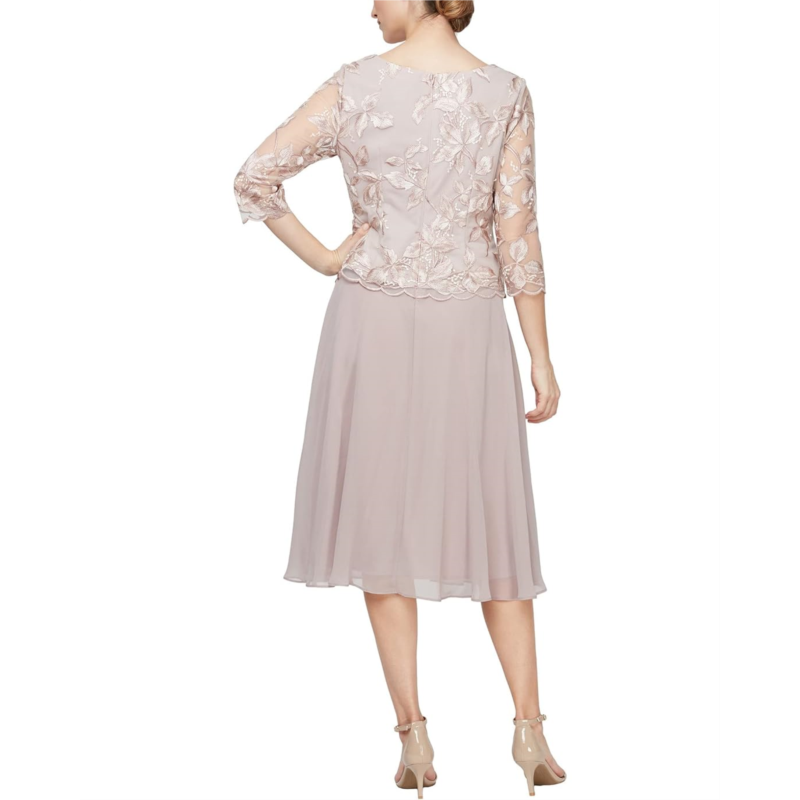 [US] Womens Alex Evenings Tea Length Mock Embroidered Dress