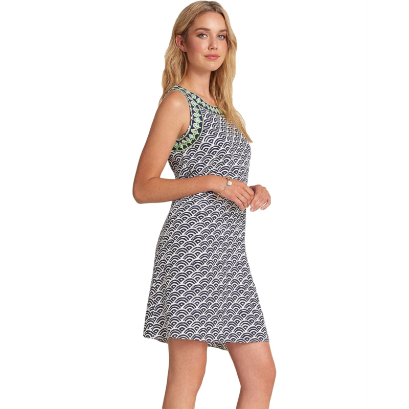 - This Hatley trapezekorea dress features a round neckline, sleeveless construction, back tie with tassel accents and keyhole design, and allover sun ray print.