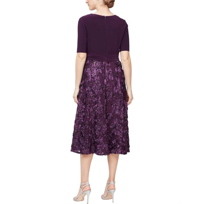 [US] Womens Alex Evenings Tea-Length Dress with Rosette Lace