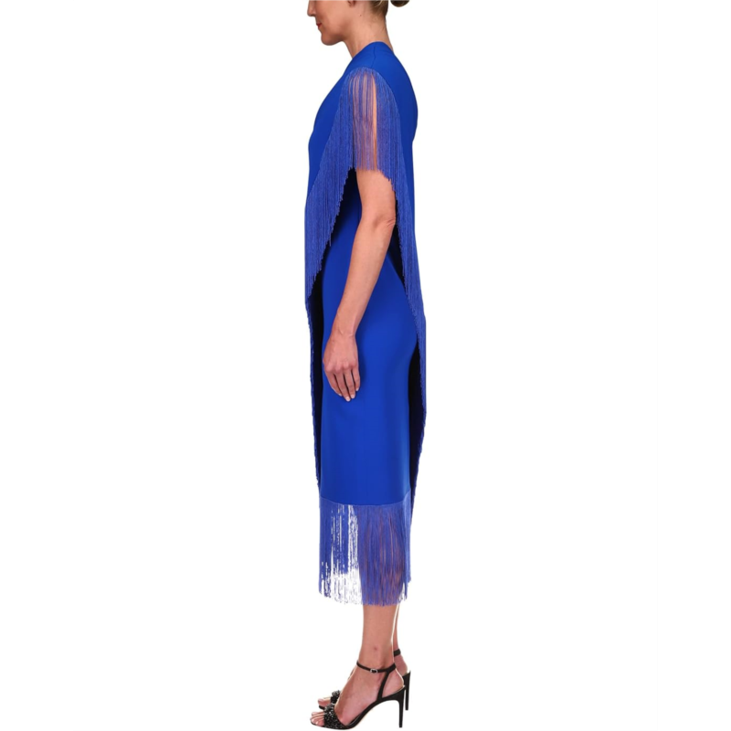[US] Womens Badgley Mischka Stretch Crepe Fringe Dress