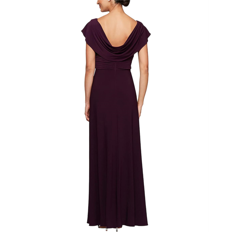 [US] Womens Alex Evenings Long Cowl Neck A-Line Dress with Beaded Detail at Waist