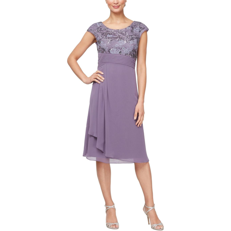 - Get a witty sense of style and catch everyones attention donning the Alex Evenings Short Embroiderd with Pleated Waist. The sassy knee-length and A-line dress features embroidered bodice with pleated detailing on the waist, and zippered back closure.