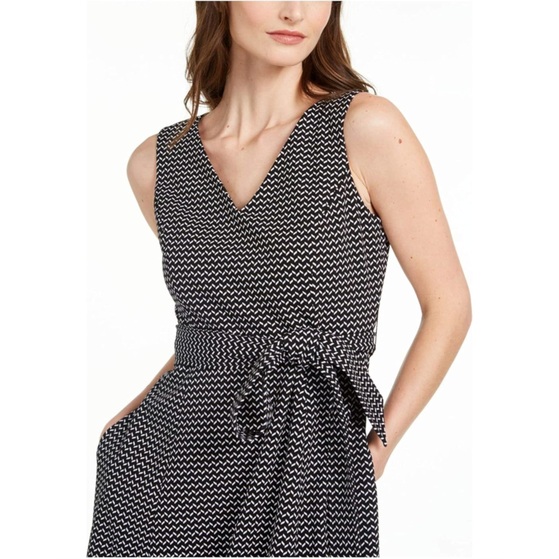 Womens Calvin Klein Sleeveless V Neck Midi Dress with Self Sash Waist
