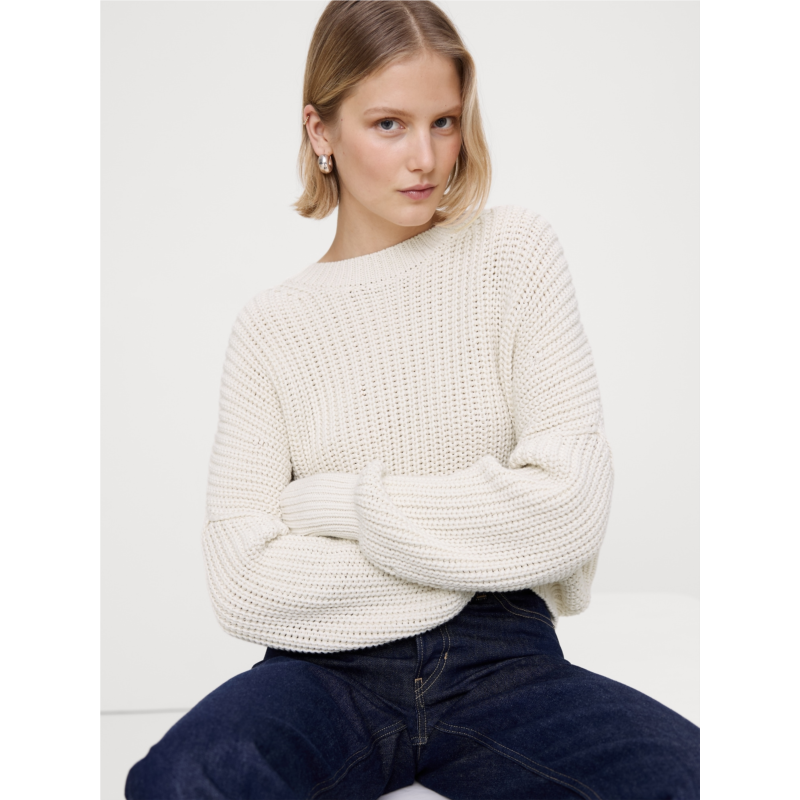 - We wanted to make the classic cotton crew-neck feel fresh, so we updated the fit to a slouchy, dolman-sleeved silhouette and reached for a chunky cotton yarn we love because its warm enough for winter, but light enough for spring and summer.