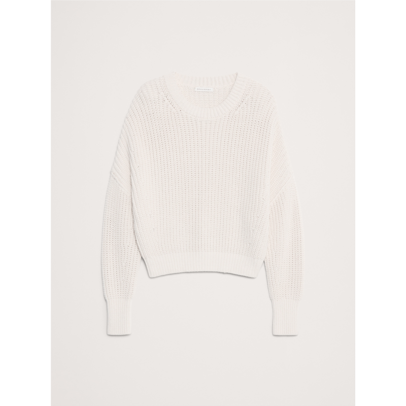 - We wanted to make the classic cotton crew-neck feel fresh, so we updated the fit to a slouchy, dolman-sleeved silhouette and reached for a chunky cotton yarn we love because its warm enough for winter, but light enough for spring and summer.