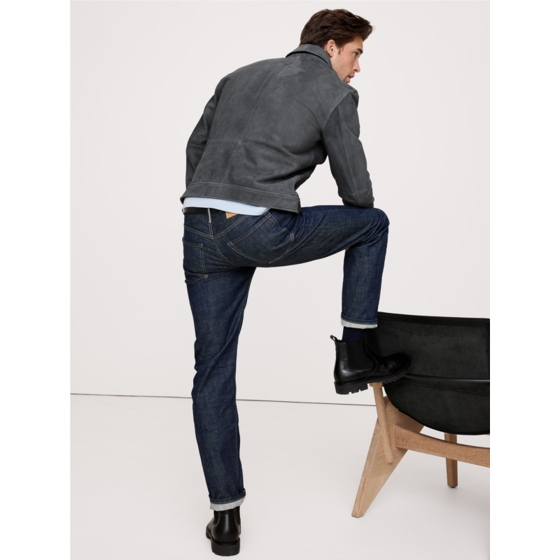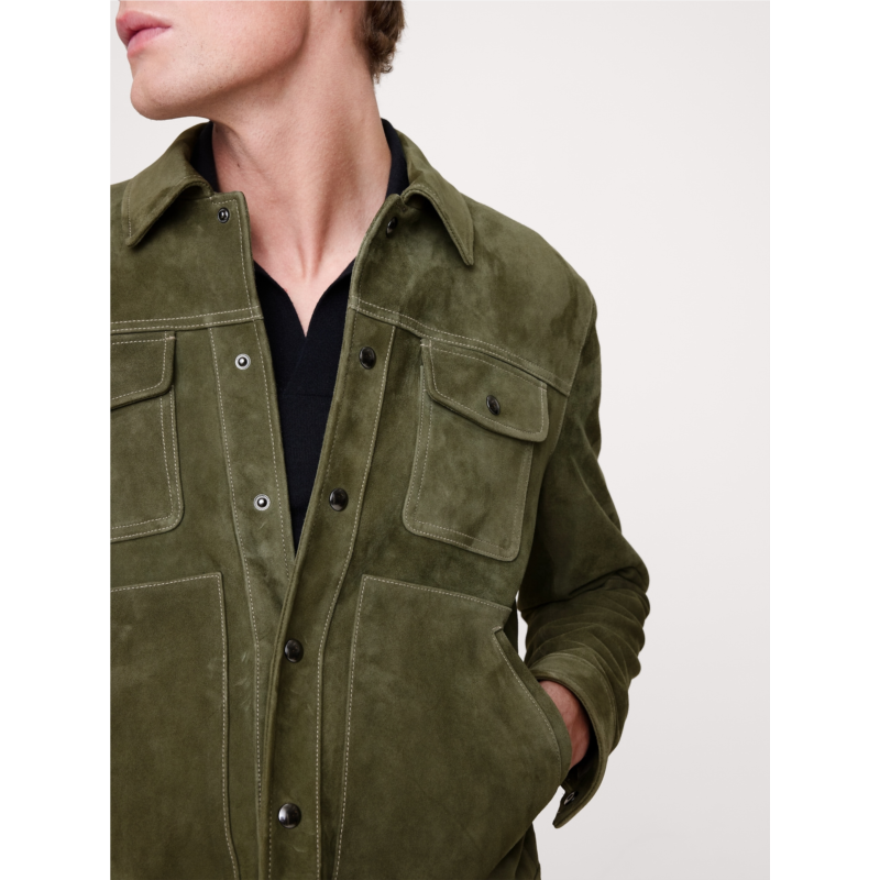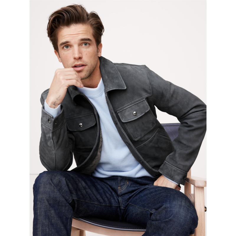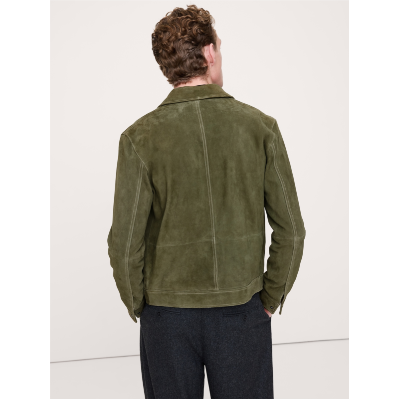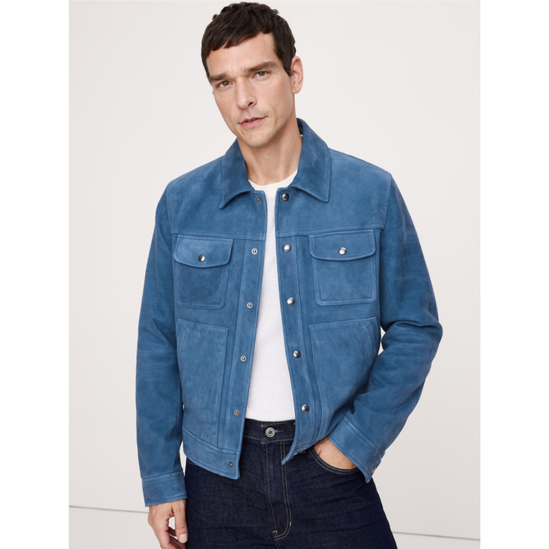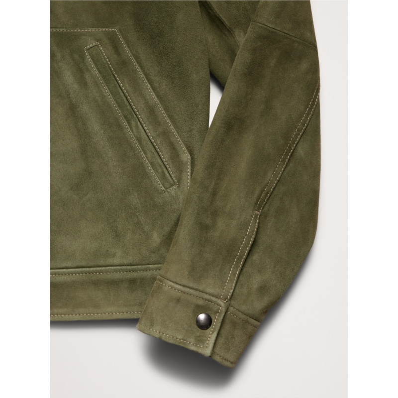 - A luxurious take on a utilitarian staple, this suede jacket borrows its silhouette from classic trucker jean jackets. We kept the pocketing, snap buttons, and top-stitch detailing of the original, and rendered it in premium suede, made in one of the world’s most renowned ateliers. Plus, since its suede, it will only get better with time, developing a rich and unique patina.