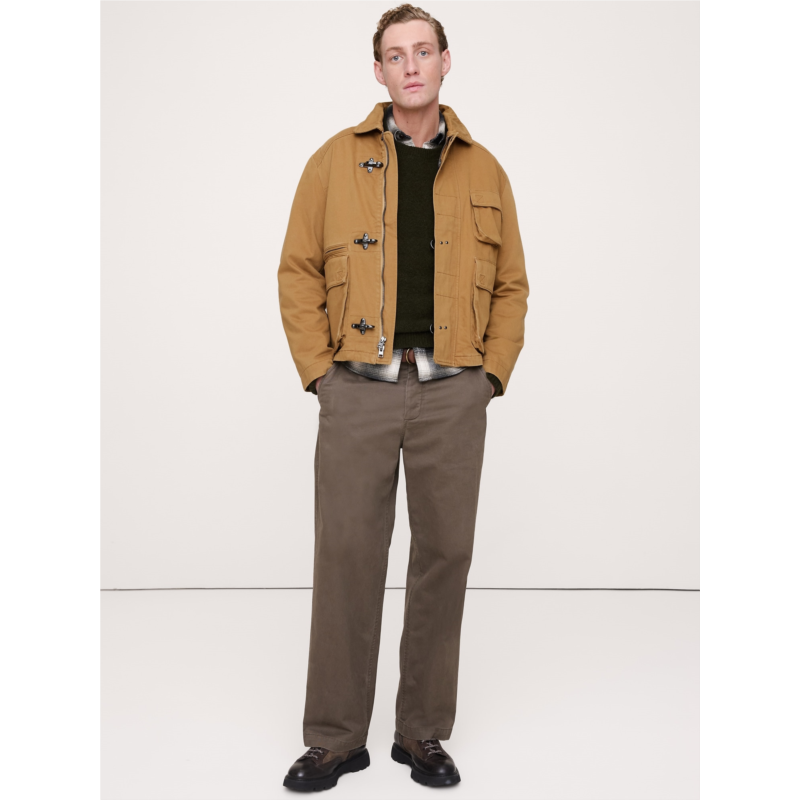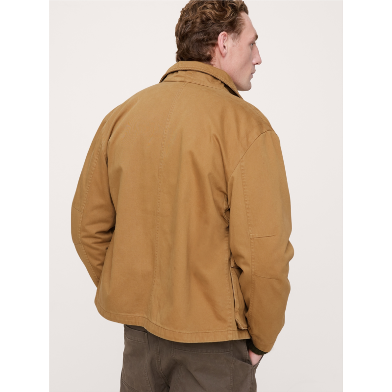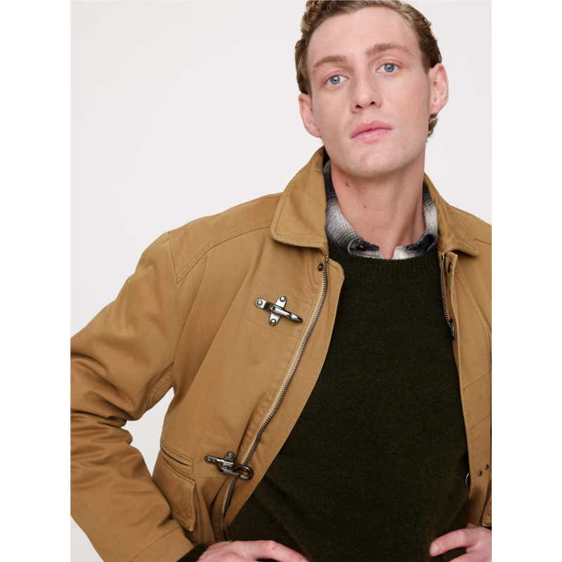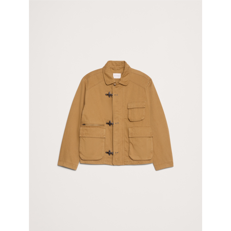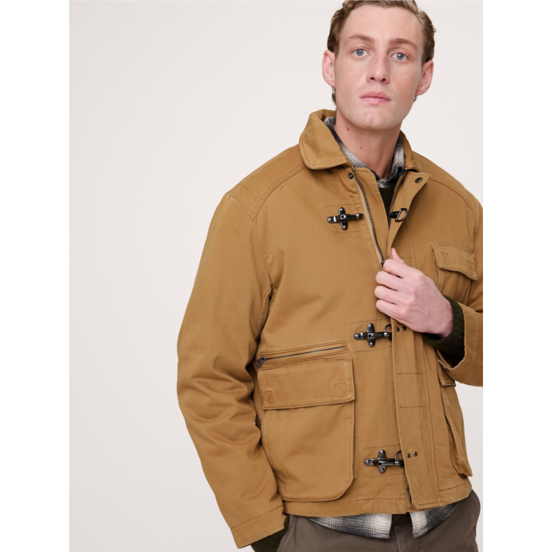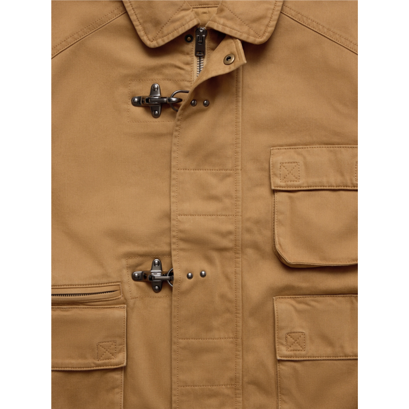 - Inspired by a vintage piece, this jacket mimics the details of an old firemans coat with its hefty cotton twill fabric and the rugged clasp closure. Plus, we added a plethora of pockets at the front for true utility vibes.