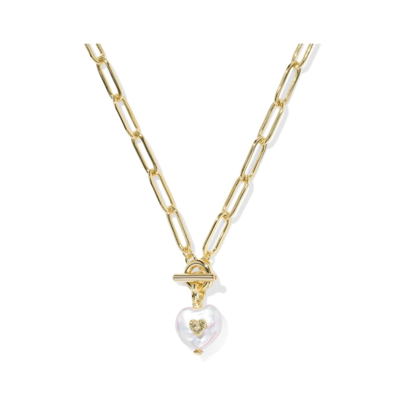- The Kendra Scott Sasha Heart Short Pendant Necklace gives pearls a major (and adorable) update. Featuring a heart-shaped freshwater cultured pearl with a metallic beauty mark on a toggle closure paperclip chain, this trend-forward necklace will become a unique and lovely piece for your collection.