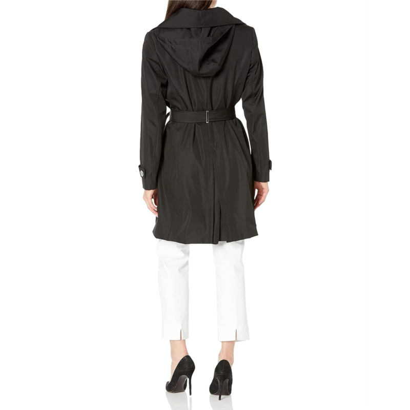 [US] Womens Calvin Klein Single Breasted Belted Rain Jacket with Removable Hood