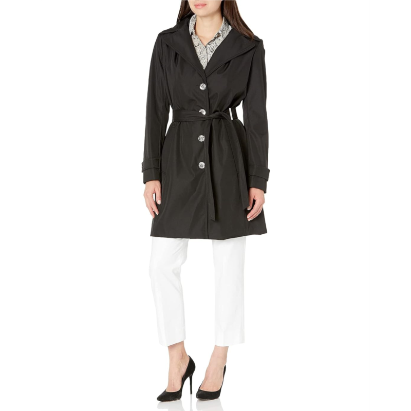 [US] Womens Calvin Klein Single Breasted Belted Rain Jacket with Removable Hood
