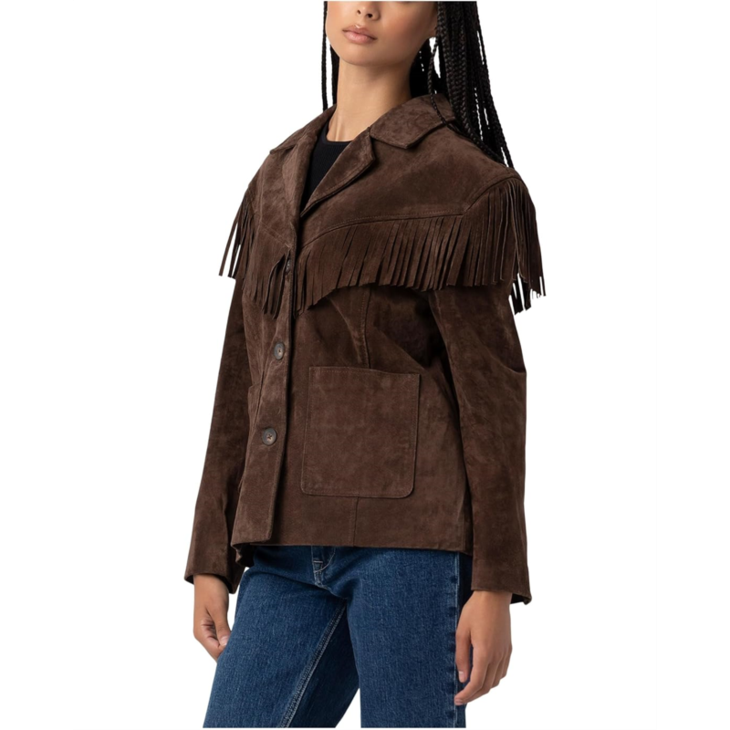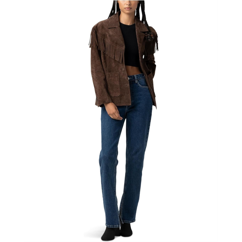 [US] Womens Blank NYC Real Suede Fringe Blazer