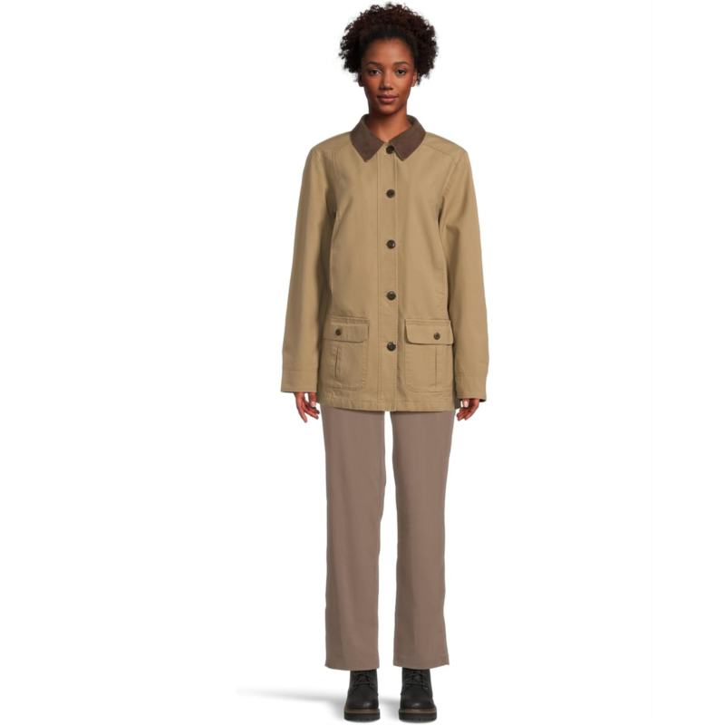 - Rugged charm meets everyday elegance in the L.L.Bean Adirondack Barn Coat Flannel-Lined. Crafted with a classic collared neck, button-front closure, and long sleeves, this coat channels heritage-inspired appeal while offering modern ease. The prewashed fabric feels wonderfully soft and broken-in from day one, giving you that cozy, lived-in comfort without the wait. Feminine touches shine through with princess seams and a back waist tab that creates a flattering, tailored silhouette. Practicality pairs with style in the two front patch pockets, featuring button closures and inverted pleats for subtle detailing and functional storage.