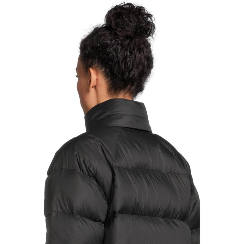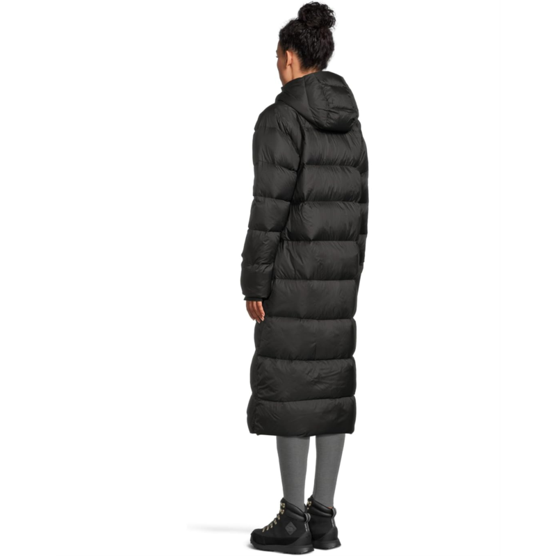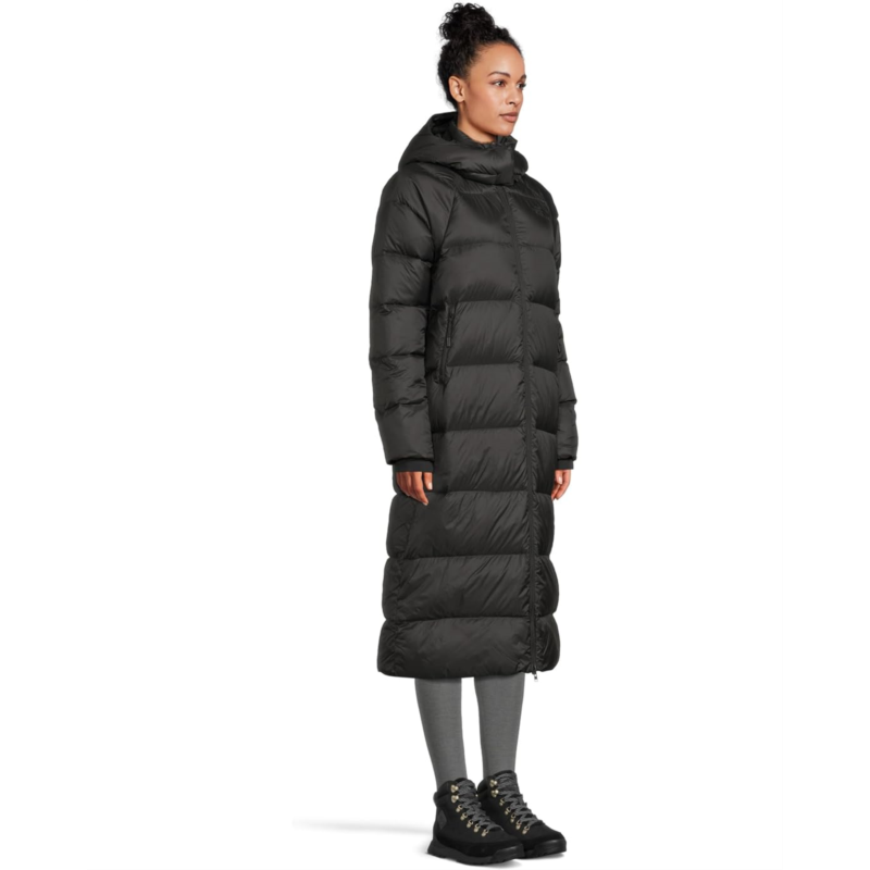 The primary materials that compose this product contain a minimum of 20 percent recycled content.- The North Face Hydrenalite City Long Down Hooded Parka features 700 fill recycled waterfowl down for long-lasting warmth. Its body fabric and lining are made with recycled nylon and have a Non-PFC DWR finish for added water repellency. The exposed, two-way, reverse-coil zippered front closure with grosgrain tape at the draft flap locks out the elements. This zip-up parka is styled with long sleeves, knit cuffs with internal elastic, free-hanging lining, a straight hem, and an adjustable hood with a placket opening, hidden snaps, and a low-profile cinch-cord and cord lock in the back. The Circular Design of the jacket allows it to be disassembled and recycled by the brand at the end of its life into raw materials for a second generation of products.