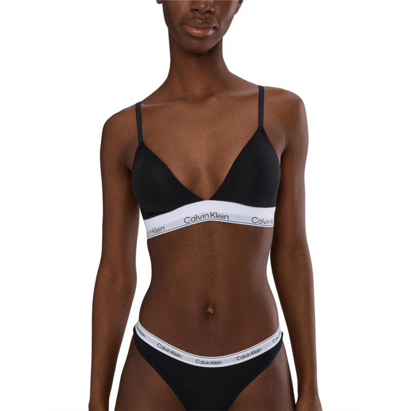 - Meet the Calvin Klein Underwear Icon Cotton Modal Lightly Lined Triangle Bralette. Crafted from a super soft cotton stretch blend, this bralette delivers breathable, sleek styling that feels as good as it looks. The lightly lined triangle cups create a natural silhouette with a lightweight, barely-there feel, while removable padding and a wire-free design provide effortless support that moves with you. Designed for flexibility, the adjustable straps convert from conventional to racerback for your perfect fit, complemented by a cushioned hook-and-eye closure for all-day comfort.