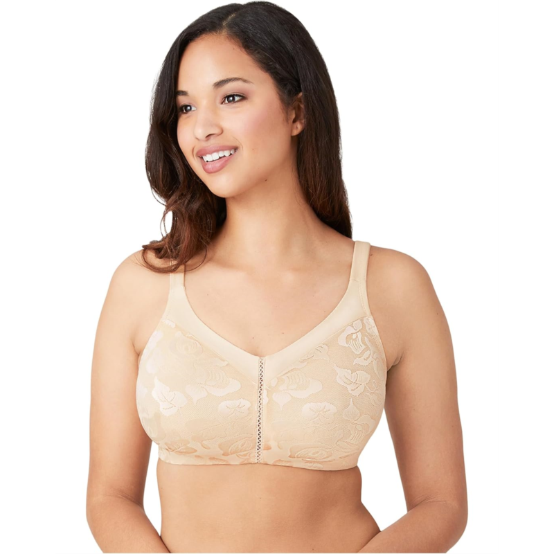 - The Wacoal Awareness No Wire Soft Cup bra flaunts a pretty appearance featuring molded, wireless cups with double-layer stretch floral on the exterior and comfortable microfiber mesh on the interior.