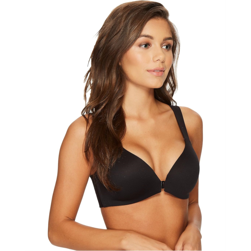 -SMOOTHS- All hosiery back smooths lumps and bumps. Front-closure design eliminates bulk under clothes.
