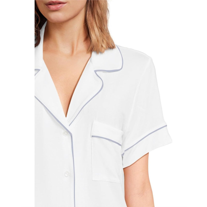 - IMPECCABLE SHORTS: This relaxed pajama set comes with a boyfriend fit pajama shorts with longer rise and contrast piping above the hemline for a comfortable fit.