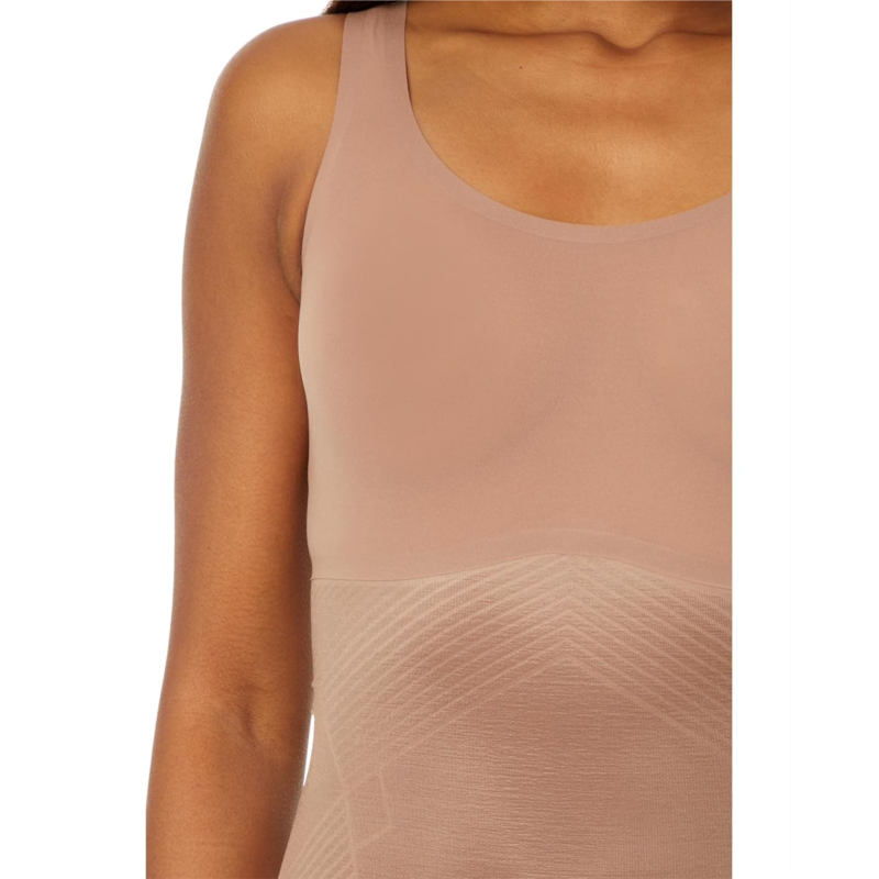 - The Spanx Thinstincts 2.0 Tank Panty Bodysuit is designed to be the perfect lightweight shaping layer. Plus it offers single-layer targeted shaping thats designed to wrap around your body and target your tummy and sides.