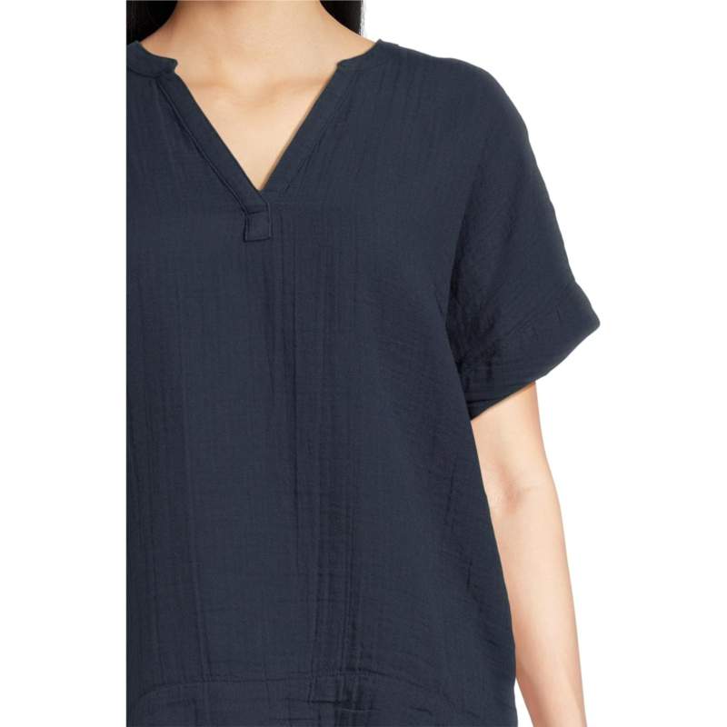 - Lightweight and breathable crinkled gauze and textured fabrication with a relaxed fit.