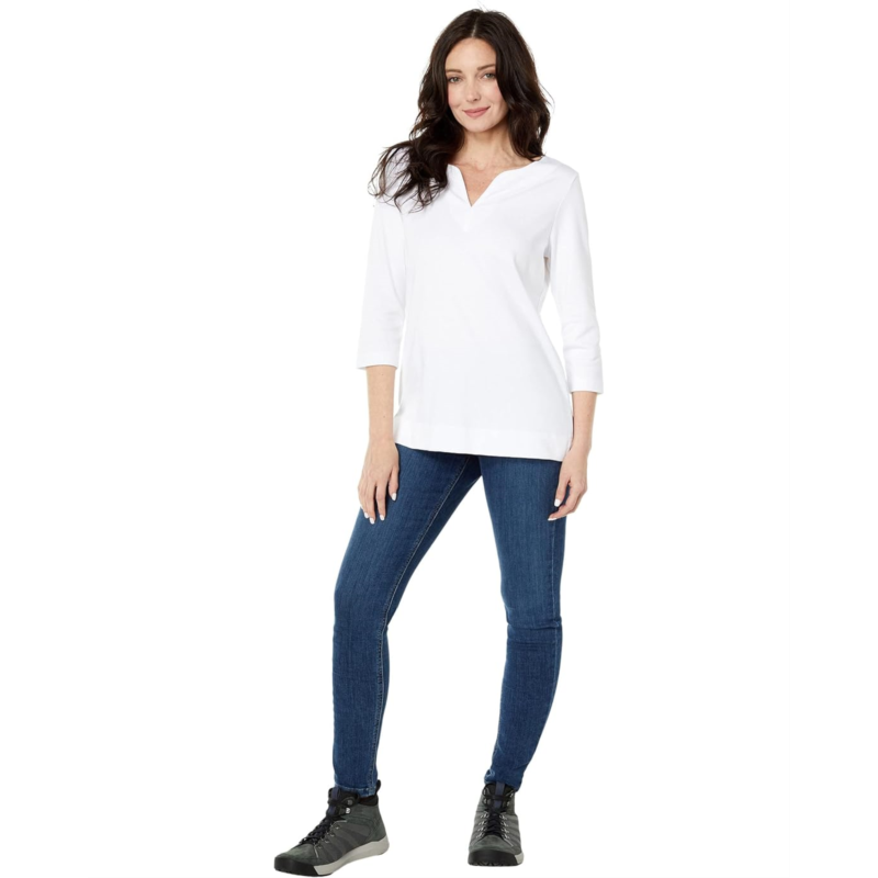 L.L.Bean Womens LLBean Pima Tops Split-Neck Tunic 3/4 Sleeve