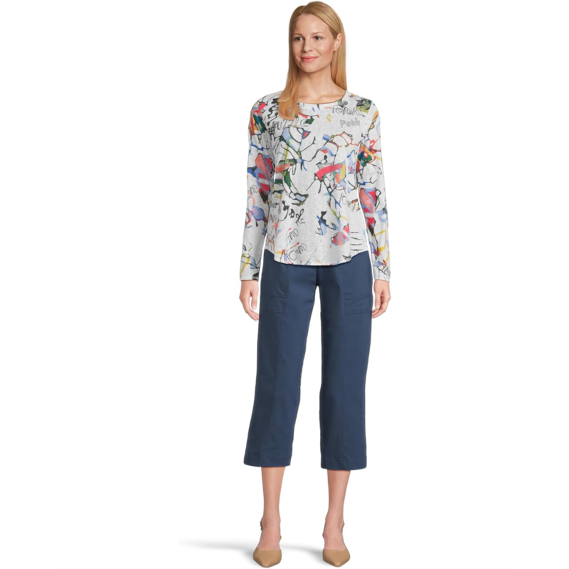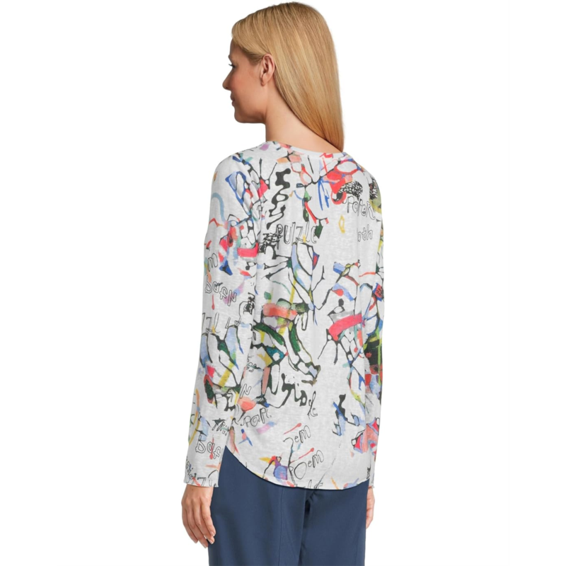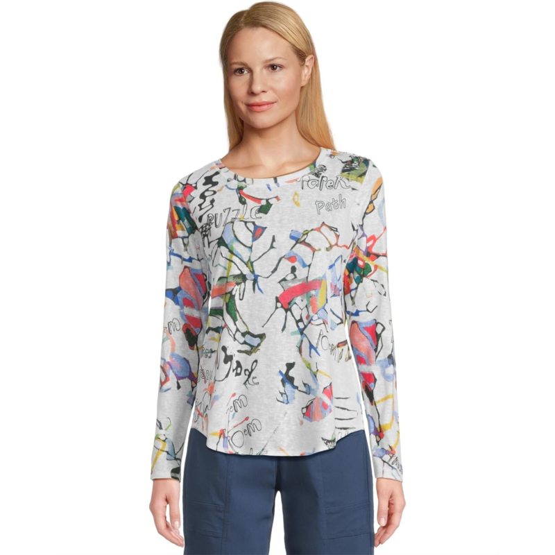 - The Elliott Lauren Watercolor Top accentuates an uber-chic vibe with its regular fit and allover letter print. The pull-on style top features a crew neck, long sleeves, and a standard-length silhouette with a curved hem.