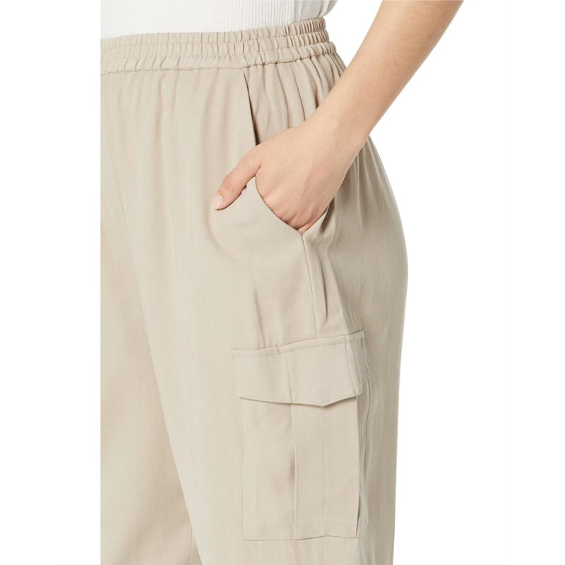 Run your errands in comfort wearing the BCBGMAXAZRIA Twill Joggers. These lightweight stretch jogger pants are crafted with an elasticized waistband, side pockets, back left welt pocket, flap-over cargo pockets at the outer thighs and finished with elasticized hems to give you freedom when styling.