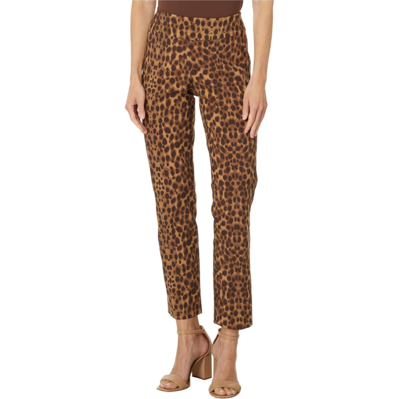 Dressy figure-flattering pant boasts a smooth blend of nylon and rayon with spandex for a smidgen of stretch.
