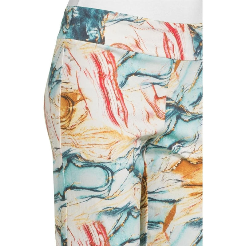 Dressy figure-flattering pant boasts a smooth blend of nylon and rayon with spandex for a smidgen of stretch.