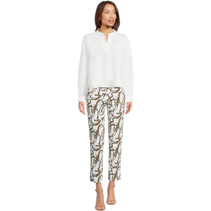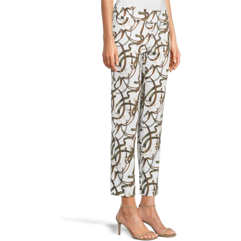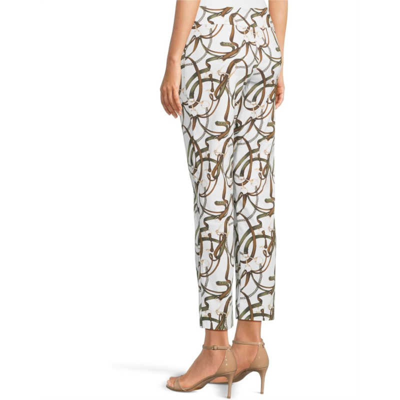 Dressy figure-flattering pant boasts a smooth blend of nylon and rayon with spandex for a smidgen of stretch.