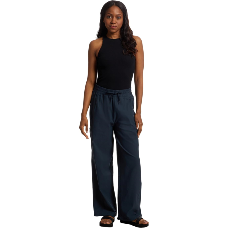 The prAna Send Off Pants are your everyday pants high on the list for the best style, comfort, and versatility. Build with a relaxed fit and a pleasingly high-rise skinny leg, they''re the perfect layer for studio sessions, coffee runs, or casual outings. A PFC-free DWR finish repels light moisture and the adjustable drawcord waistband and cinching hem give you a precise fit. Forward side seams with exaggerated drop-in pockets bring function to fashion, while back yoke princess seaming provides shape to the silhouette.