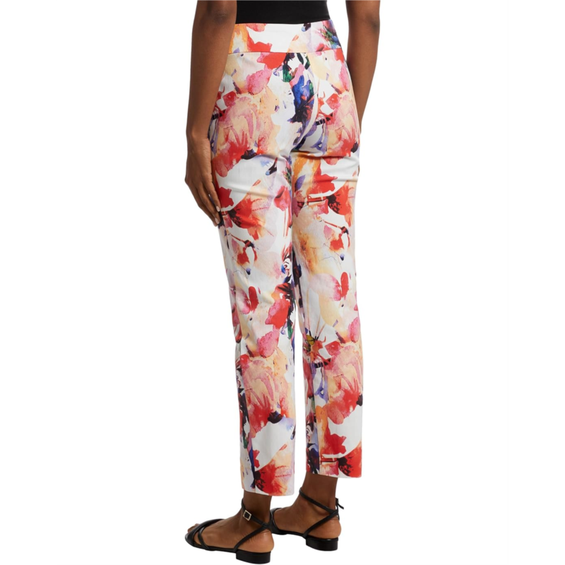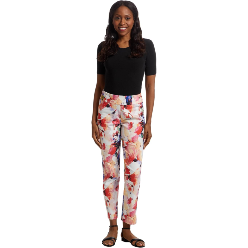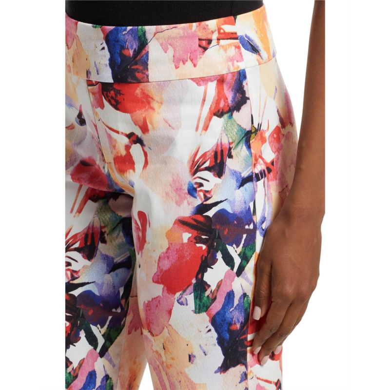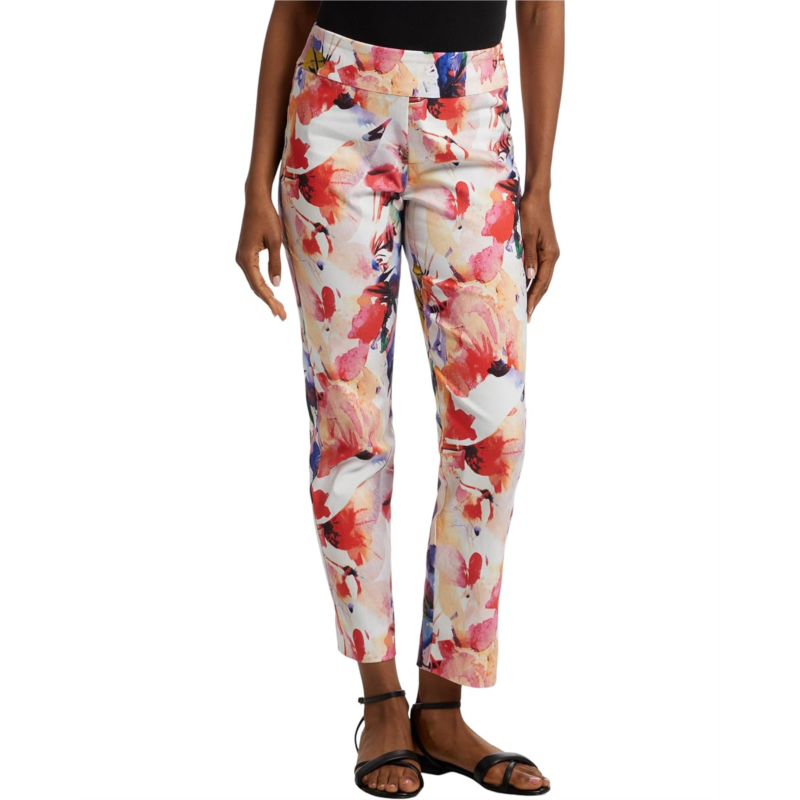 Dressy figure-flattering pant boasts a smooth blend of nylon and rayon with spandex for a smidgen of stretch.
