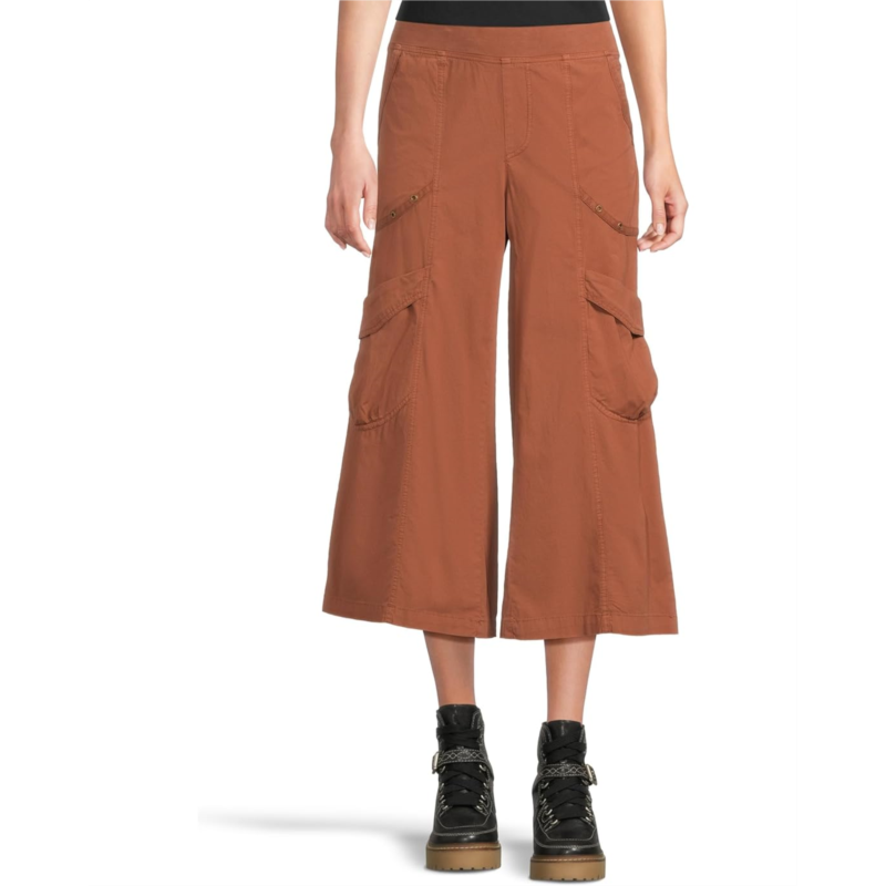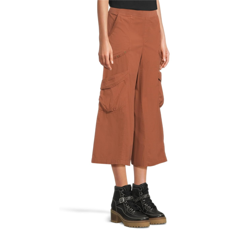 Effortlessly cool, uniquely you - Meet the XCVI Faulkner Crop! Get ready to elevate your style with these chic, mid-rise gaucho crops that blend comfort and utility. Featuring exaggerated cargo pockets, these pants embrace a trendy, laid-back vibe with a touch of adventure. The pull-on design and elasticized waist provide a comfortable fit, while the cropped leg adds a modern twist. Antique Brass hardware details give the look a touch of vintage flair, and the two slip pockets and knee flap pockets keep essentials within easy reach.