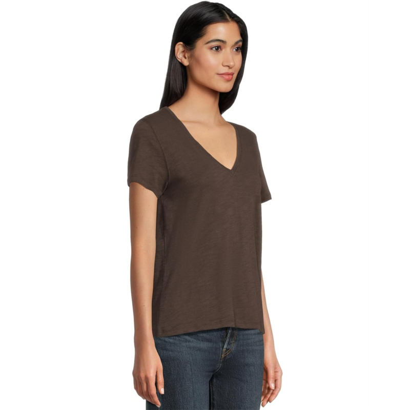 Womens Lilla P Short Sleeve Back Seam V-Neck