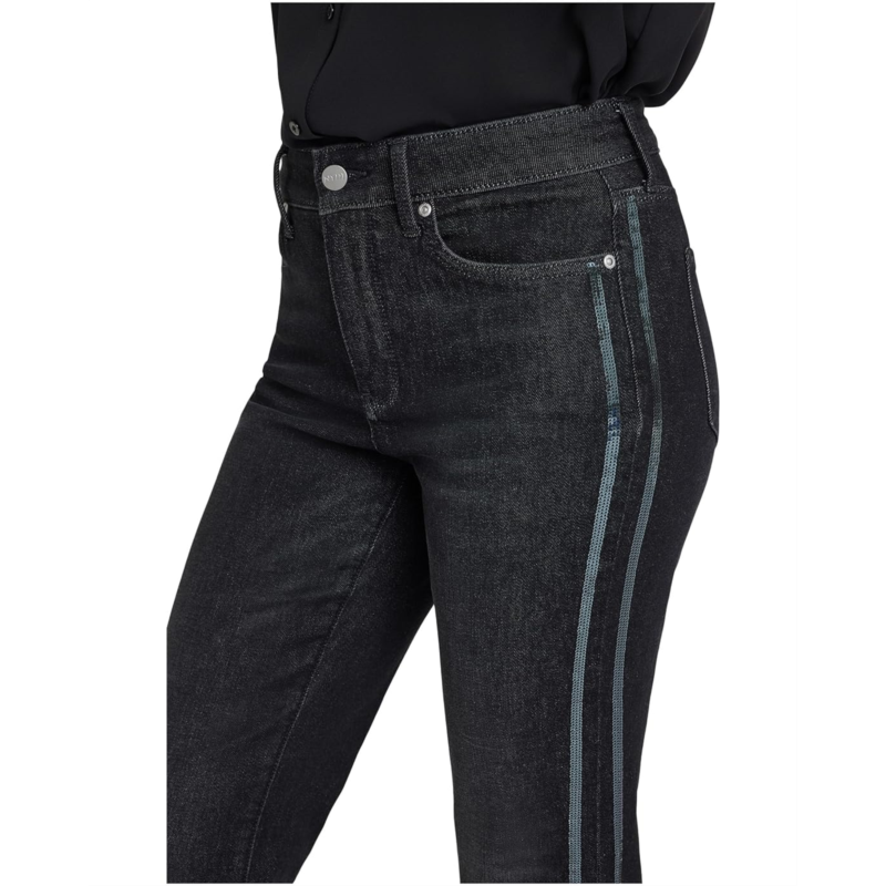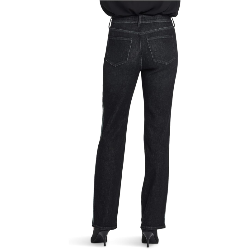 The curve-sculpting, figure-elongating construction of NYDJ Petite Marilyn Straight Jeans in French Nighfall with high-rise waist pairs well with everything, in a versatile straight-leg silhouette. This Marilyn Straight style features tuxedo-inspired sequin detail along the sides. Lift Tuck Technology lifts and shapes curves so you instantly appear one size smaller. Complete with belt loops, zip-fly, and button closure.