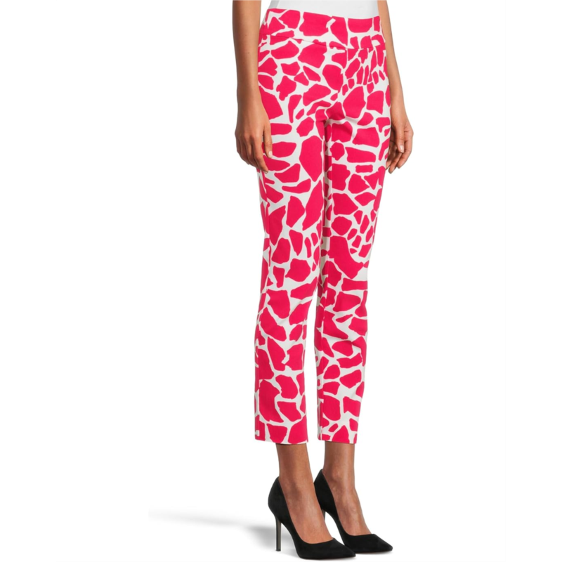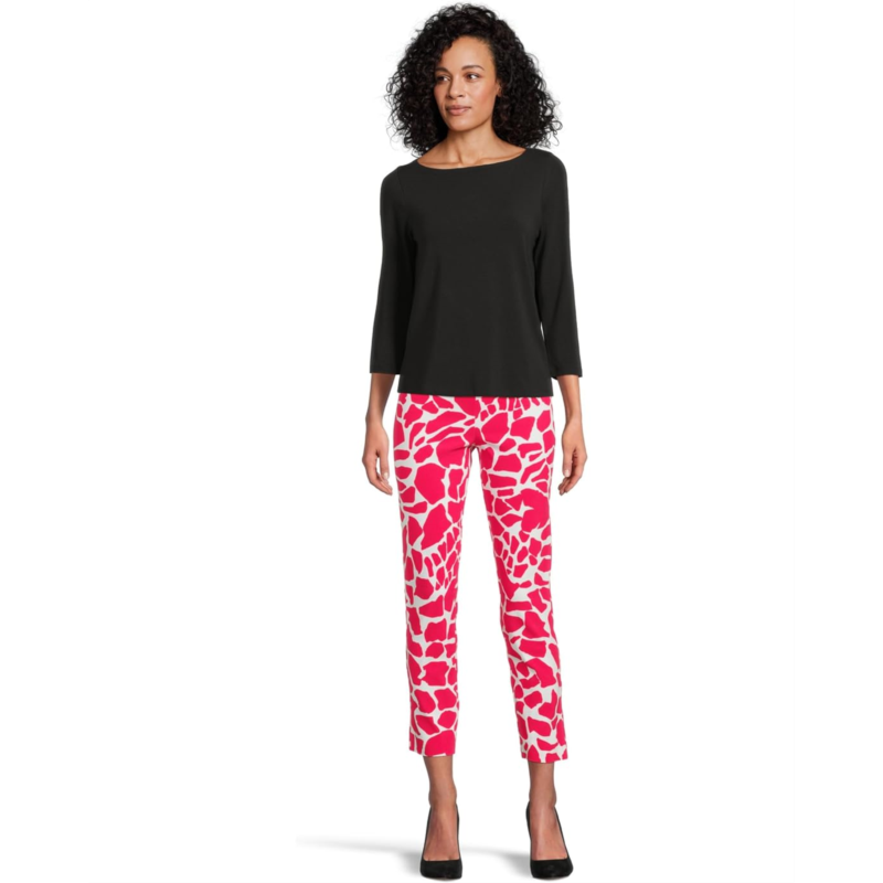 Dressy figure-flattering pant boasts a smooth blend of nylon and rayon with spandex for a smidgen of stretch.